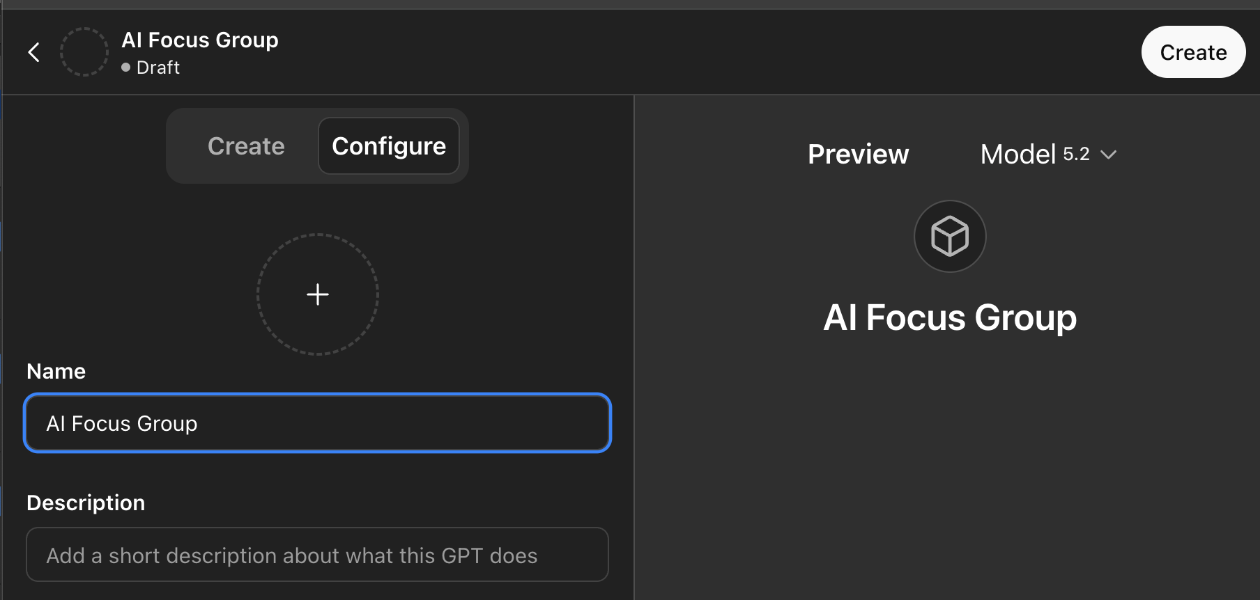 Name the GPT appropriately (e.g., “AI Focus Group”).